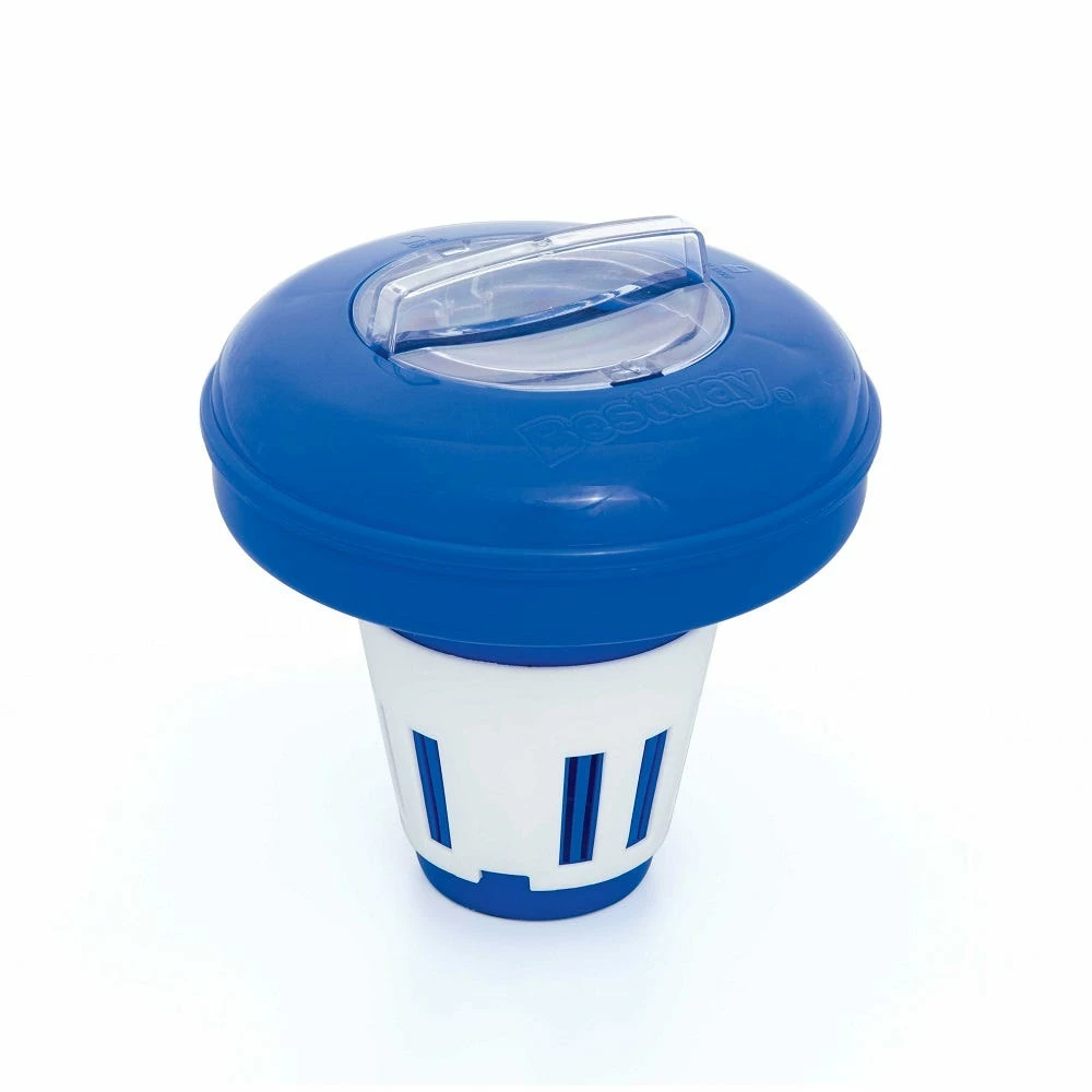 Keep your pool water crystal clear with a Chemical Floater by Bestway®. This blue and white floater dispenses bromine or chlorine tablets. It also has an adjustable dial to control the sanitization flow. (Tabs not included.) Your pool will thank you!