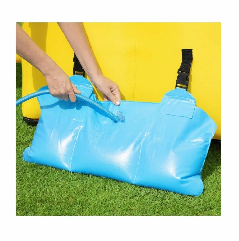 - Contents: 1 water park, 1 blower, 1 repair kit, 1 storage bag, 10 stakes, 1 anchor bag, 1 water spray hose