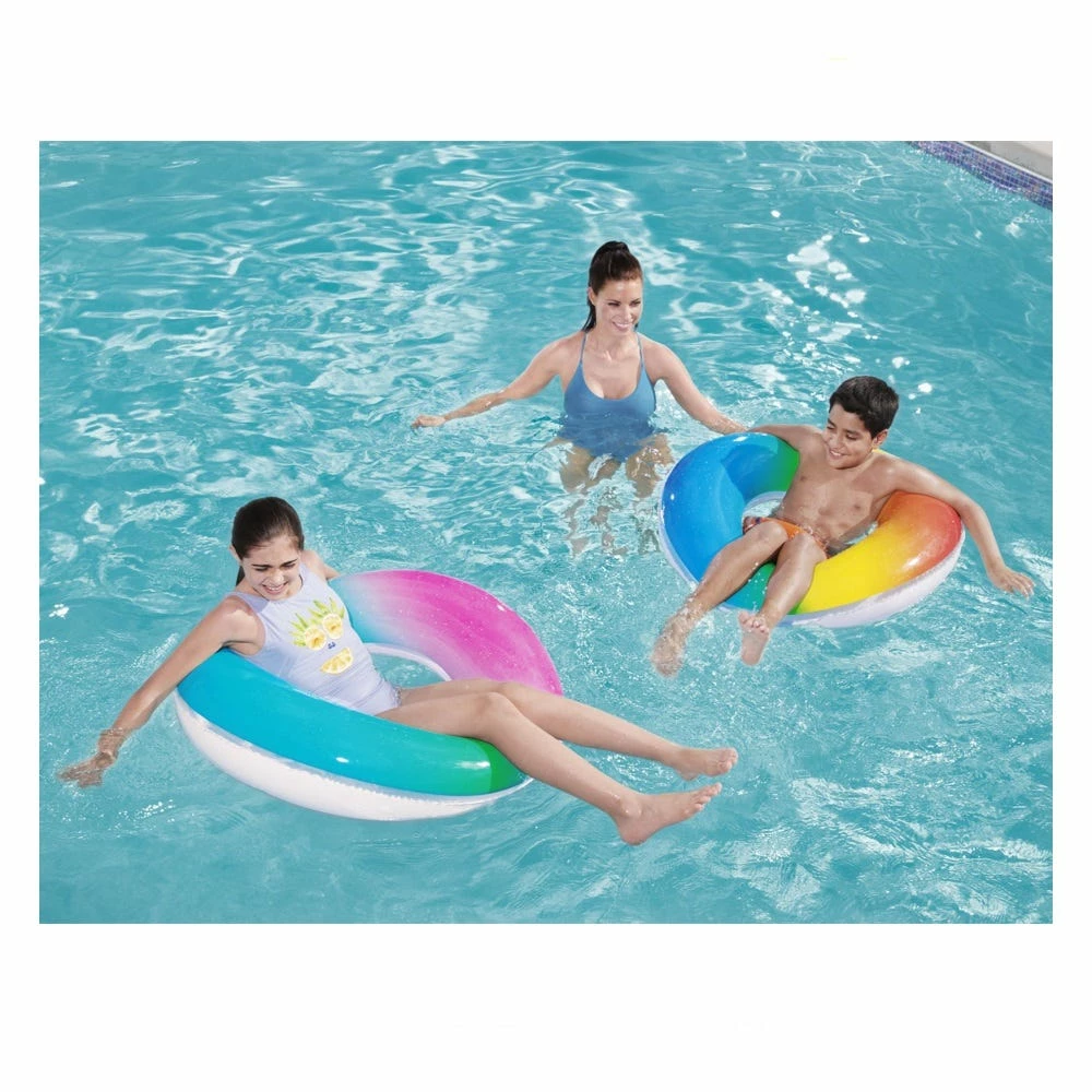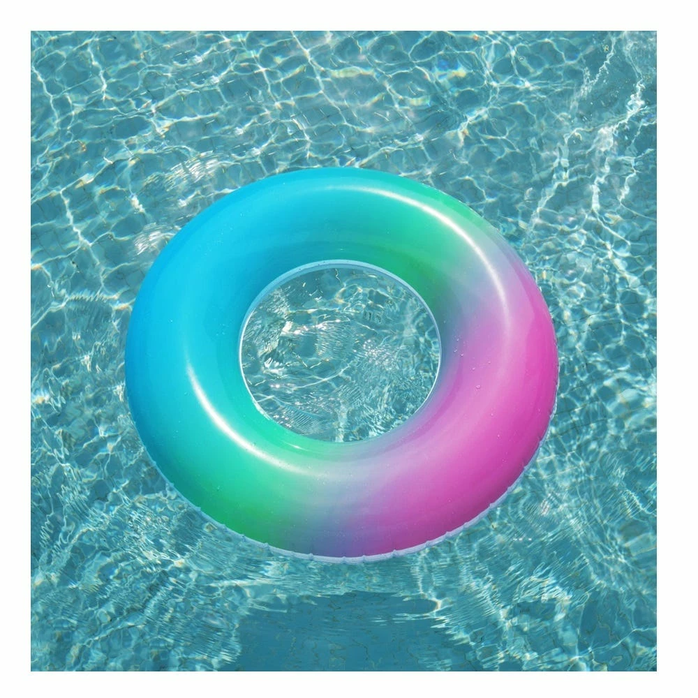 The Rainbow Swim Tube is an old-fashioned pool float with shiny, shimmering twist. The pattern is an artistic rainbow with a special kind of material that gives it a glimmering effect. These rings shine brightly under the sun and keep you cool – in more ways than one.