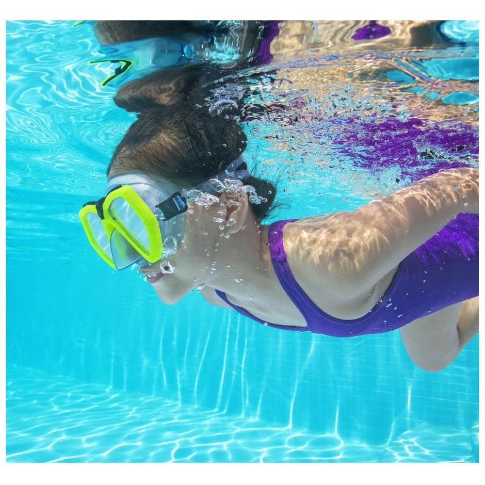 The Hydro-Swim™ EverSea Dive Mask by Bestway® is the perfect accessory for your kid’s fun underwater experience in the pool or the ocean. Geared for ages 7+, the EverSea Dive Mask features polycarbonate lenses and a double feathered edge skirt for a precision leak-resistant fit. Available in 3 colors, the mask has a fully adjustable head strap so it stays in place on their next underwater adventure. Whether swimming or snorkeling, be sure your child has the Hydro-Pro EverSea Dive Mask!