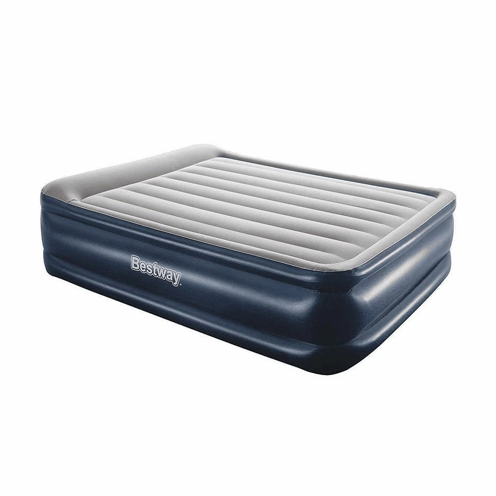 Wake up renewed and refreshed on the Bestway® Tritechâ„¢ Air Mattress! This 22 in. (56 cm) tall, Queen-sized bed promises strength, durability and comfort all night long. Its compact size and built-in pump make it quick and convenient for use whenever you need it. Durable ConstructionWith a comfortable sleeping surface and sturdy construction, along with a built-in pillow, a great night’s sleep is right around the corner. The internal structure of this bed is made with Tritechâ„¢ material offering durability and strength, while also allowing the mattress to keep the same shape no matter how many times it’s inflated and deflated. Specifically engineered for firmness, this material minimizes air loss throughout the night. The specialty Tritech material increases internal stretch-resistance and provides contoured support for all night comfort. This durable, stress-tested material can withstand all of the weight and movement that comes with a great night’s sleep. Simple SetupThis air mattress inflates in 5 minutes so it is ready for bed when you are. The built-in pump allows for easy inflation, and the quick deflate screw valve allows for easy deflation after use. Simply place your flattened bed in the included carrying bag for easy transport and storage.