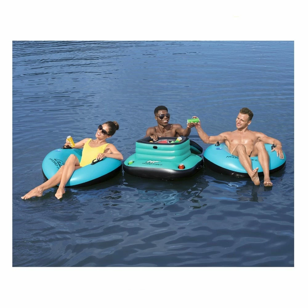 The Hydro-Force Glacial Sport Inflatable Floating Cooler will take your day on the water up a notch. The 9.43 gal. (35.7 L) of insulated cooler space will ensure that your drinks and snacks stay cold throughout your day under the sun. This floating cooler also features 4 built-in cup holders for each person to keep their open drinks conveniently close and within reach. The Glacial Sport Cooler is made with Inflata-Shield material to prevent damage. This thicker material resists puncture, limits stretching and enhances grip. The built-in heavy-duty handles make it easily portable and approved for any situation. Easy to inflate, deflate and store, the Hydro-Force Glacial Sport Floating Cooler is a no-brainer option for your day on the river, lake, beach, or pool. No need to get out of the water to refresh your drink – bring the cold drinks and snacks with you, no matter where you go!