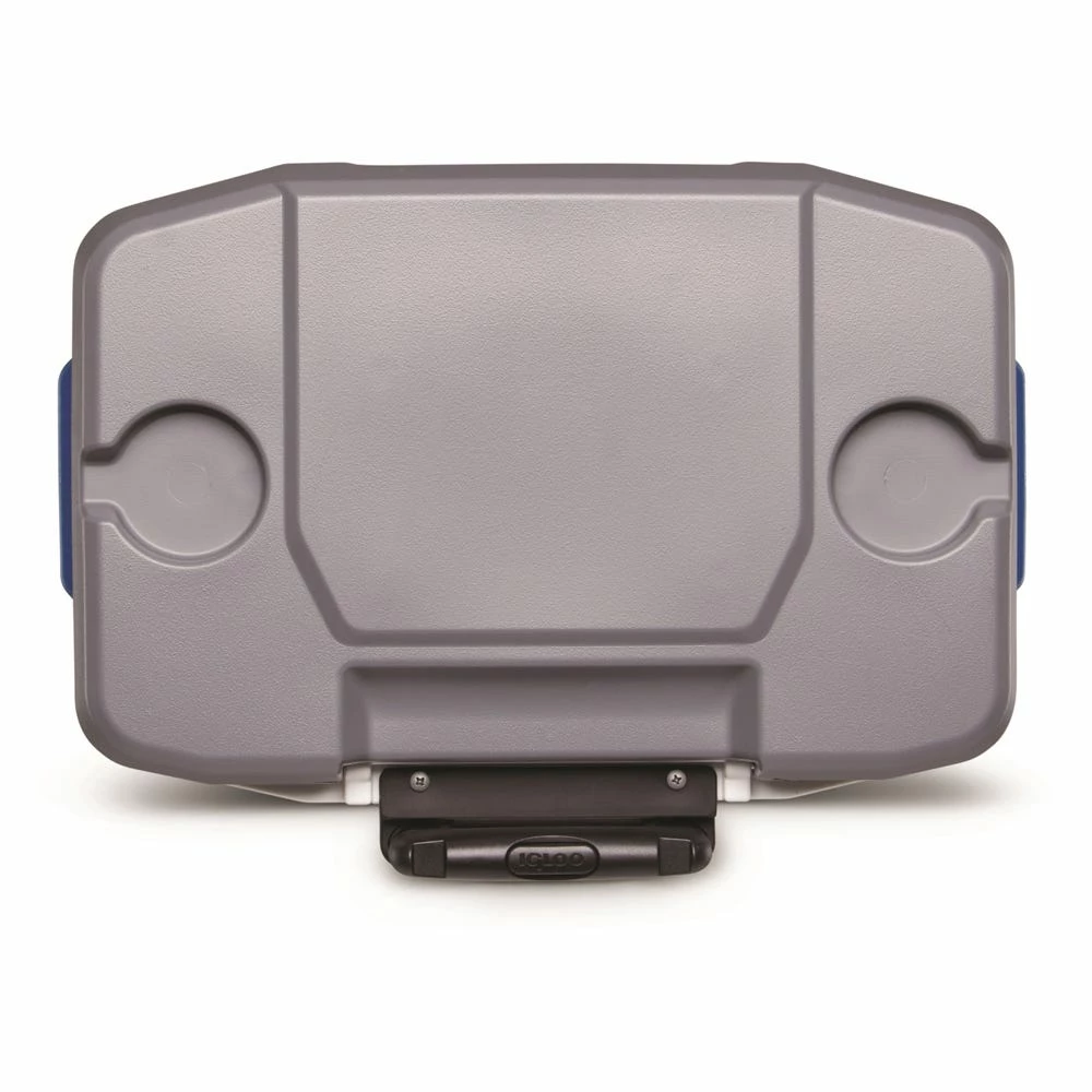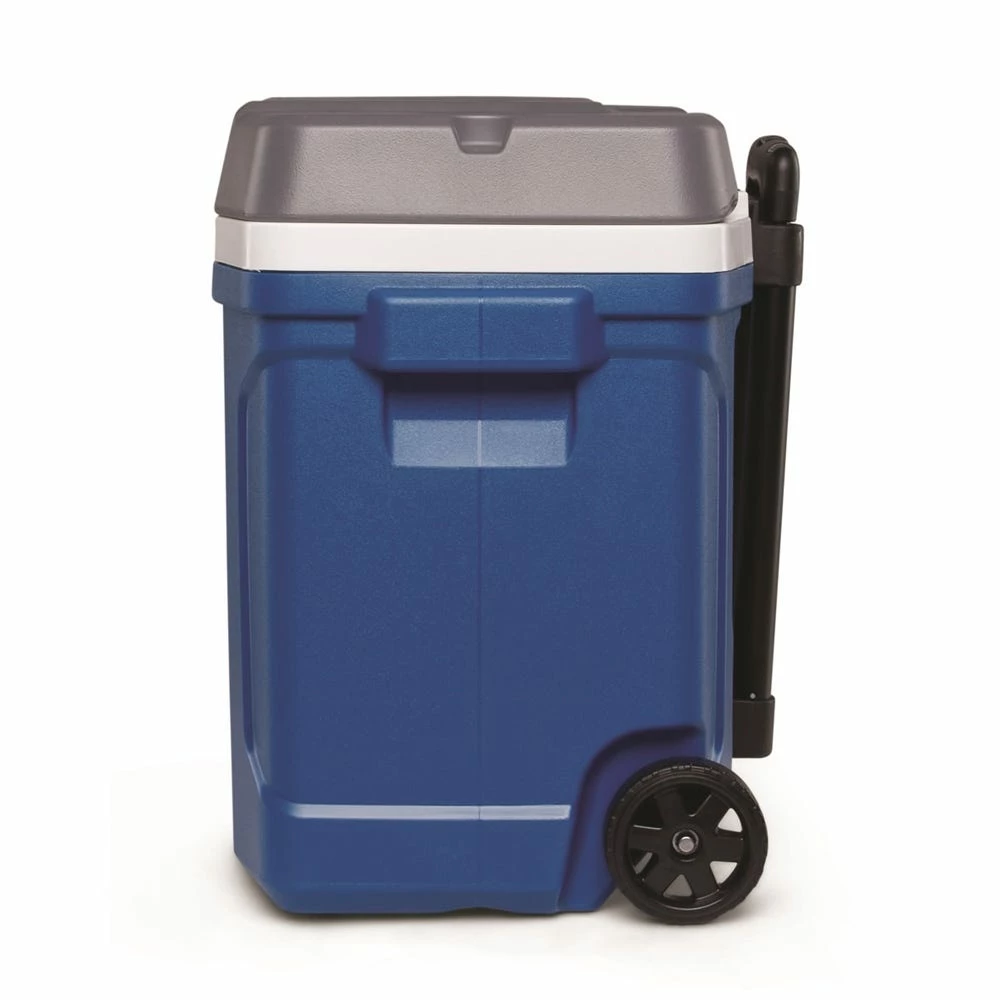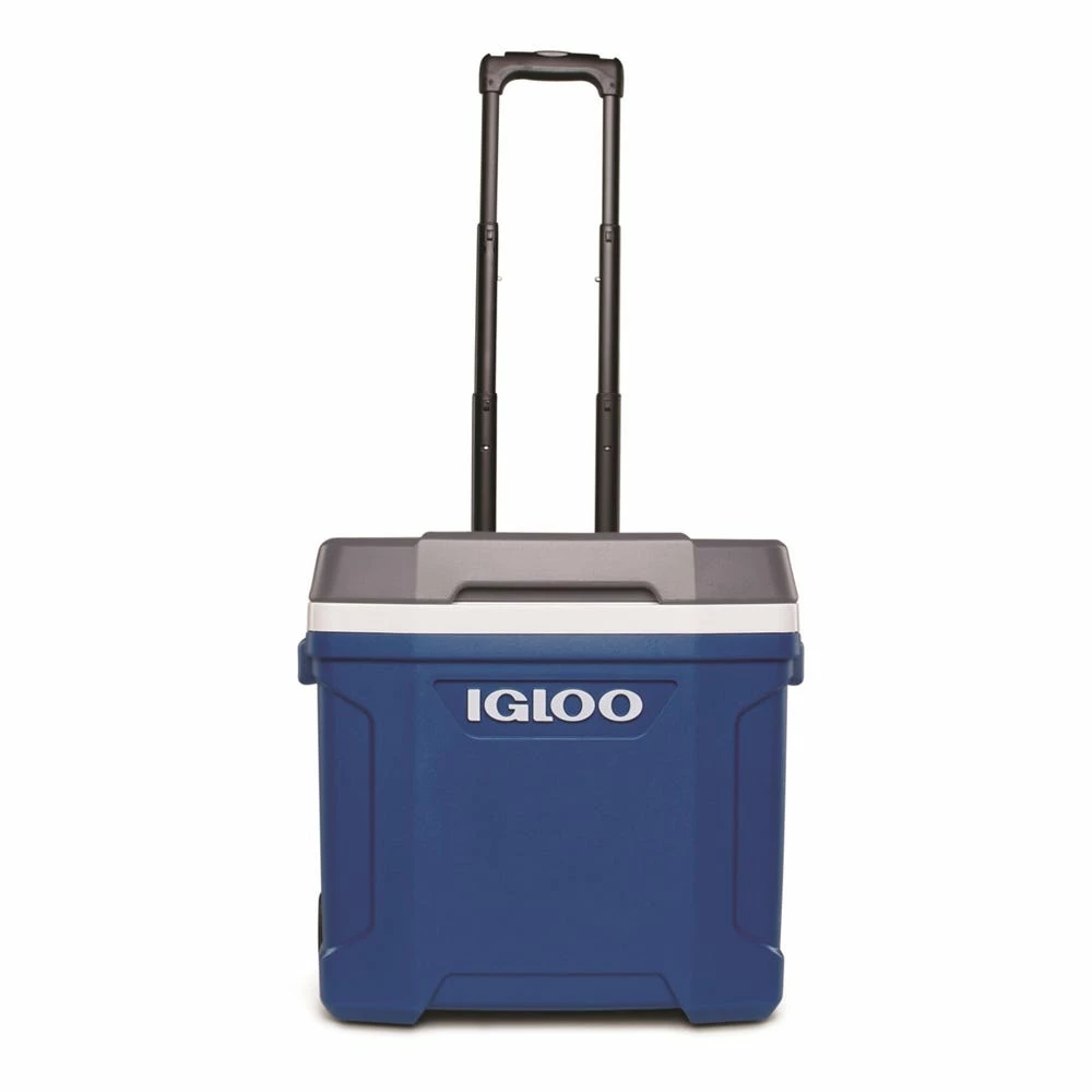 - Wheeled for easy transport and locking telescoping handle enables cooler to be pushed or pulled