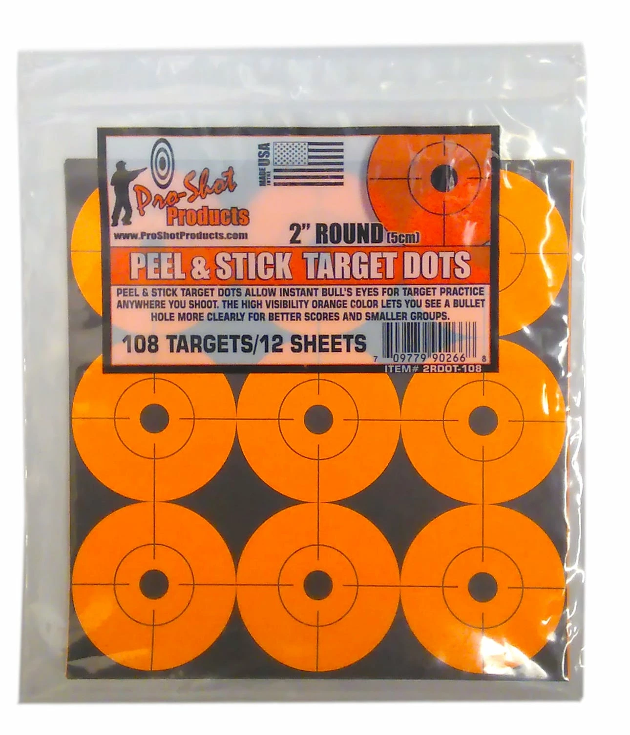 Pro-Shot Peel and Stick Target Dots- Orange 12 Sheets /108 Dots – 2RDOT-108 – Shooting Supplies