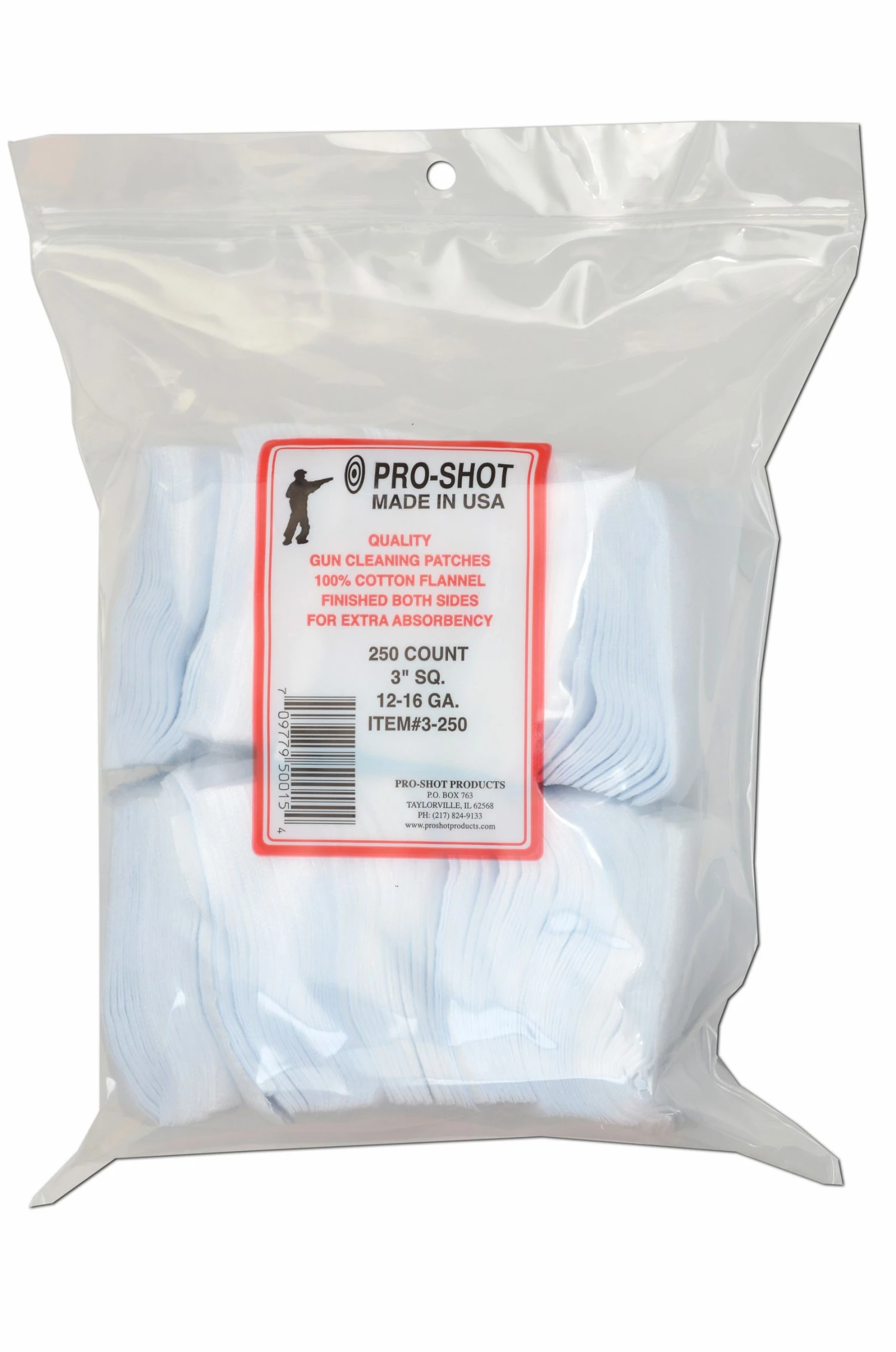 Pro-Shot Square 3 Inch Cleaning Patch 12-16 Gauge 250 Count – 3-250 – Shooting Supplies