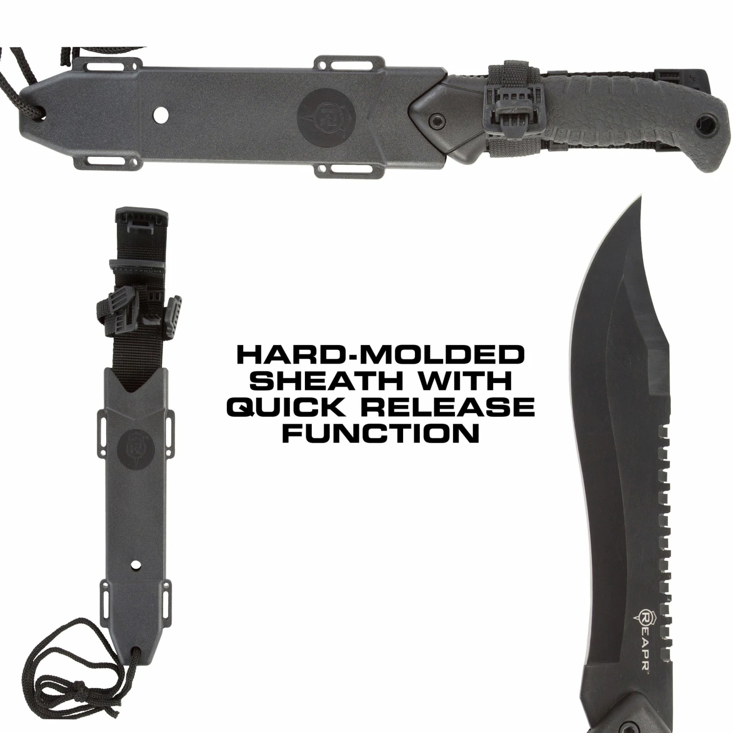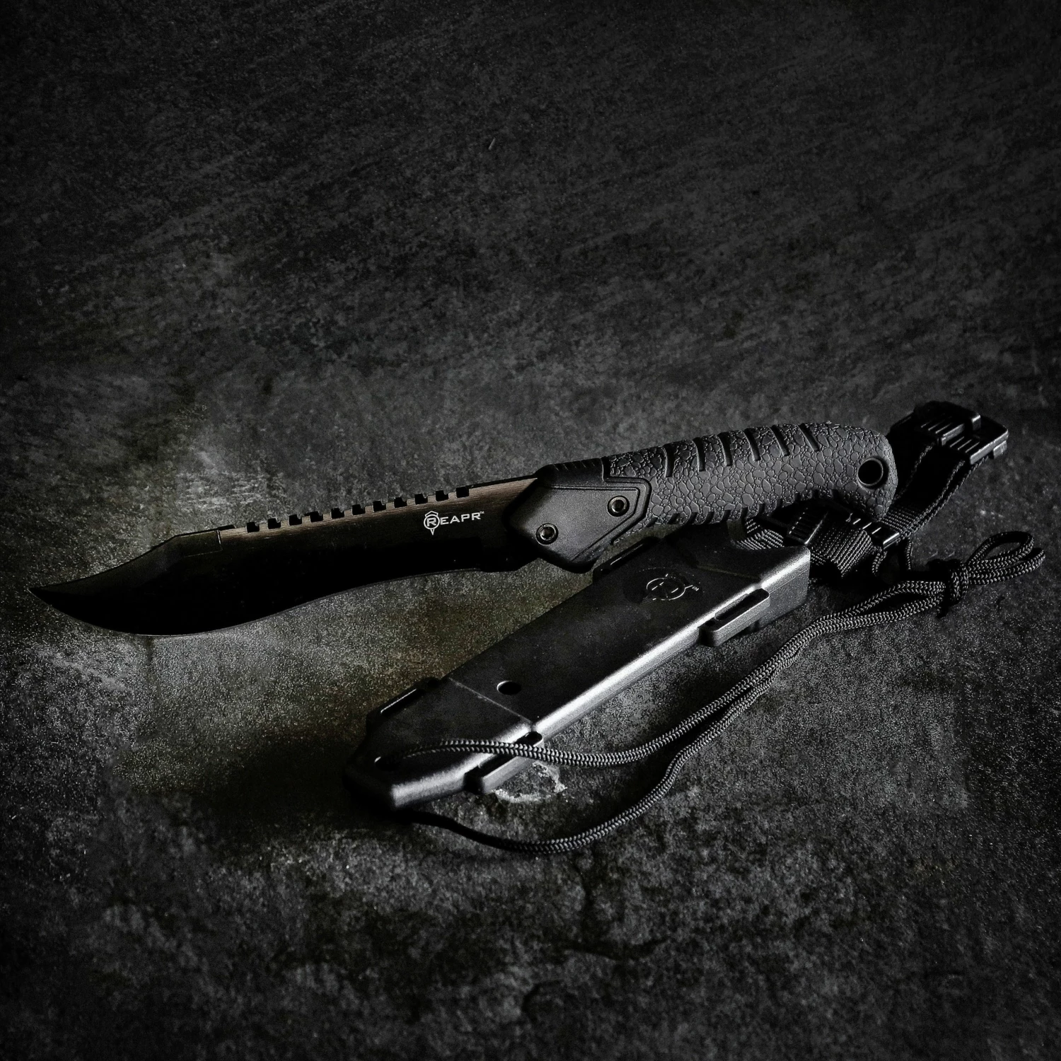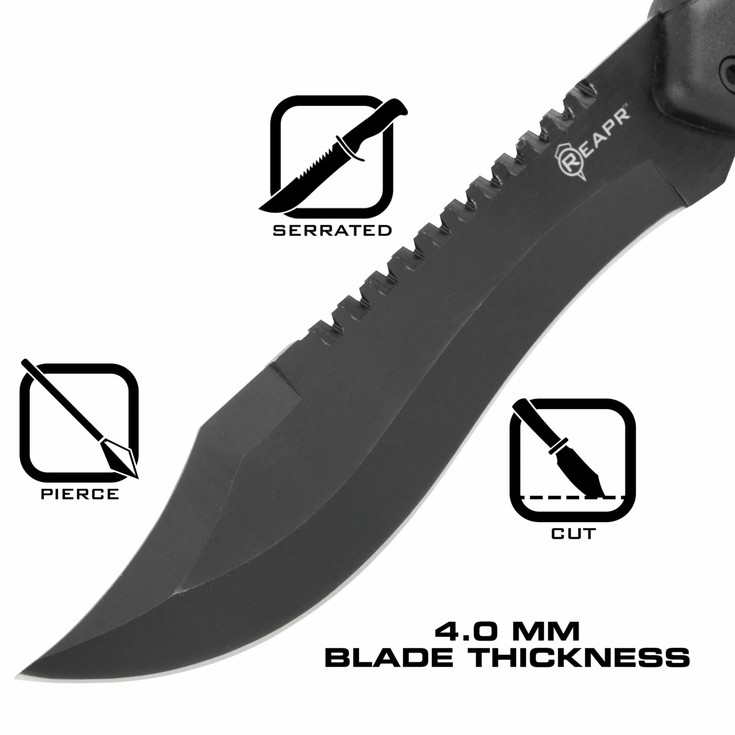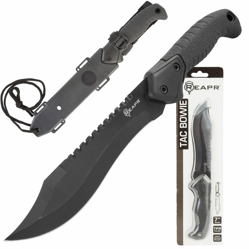 When you need an everyday carry that performs like a tactical fixed blade, you need the REAPR 11001 TAC Bowie Knife. The 7” straight-edge grooved blade with serrated back edge prepares you for any adversary no matter how tough. The rugged hi-grip TPR handle is so comfortable you won’t want to put it down. When life calls for a tactical response, take it on with REAPR by Sheffield.