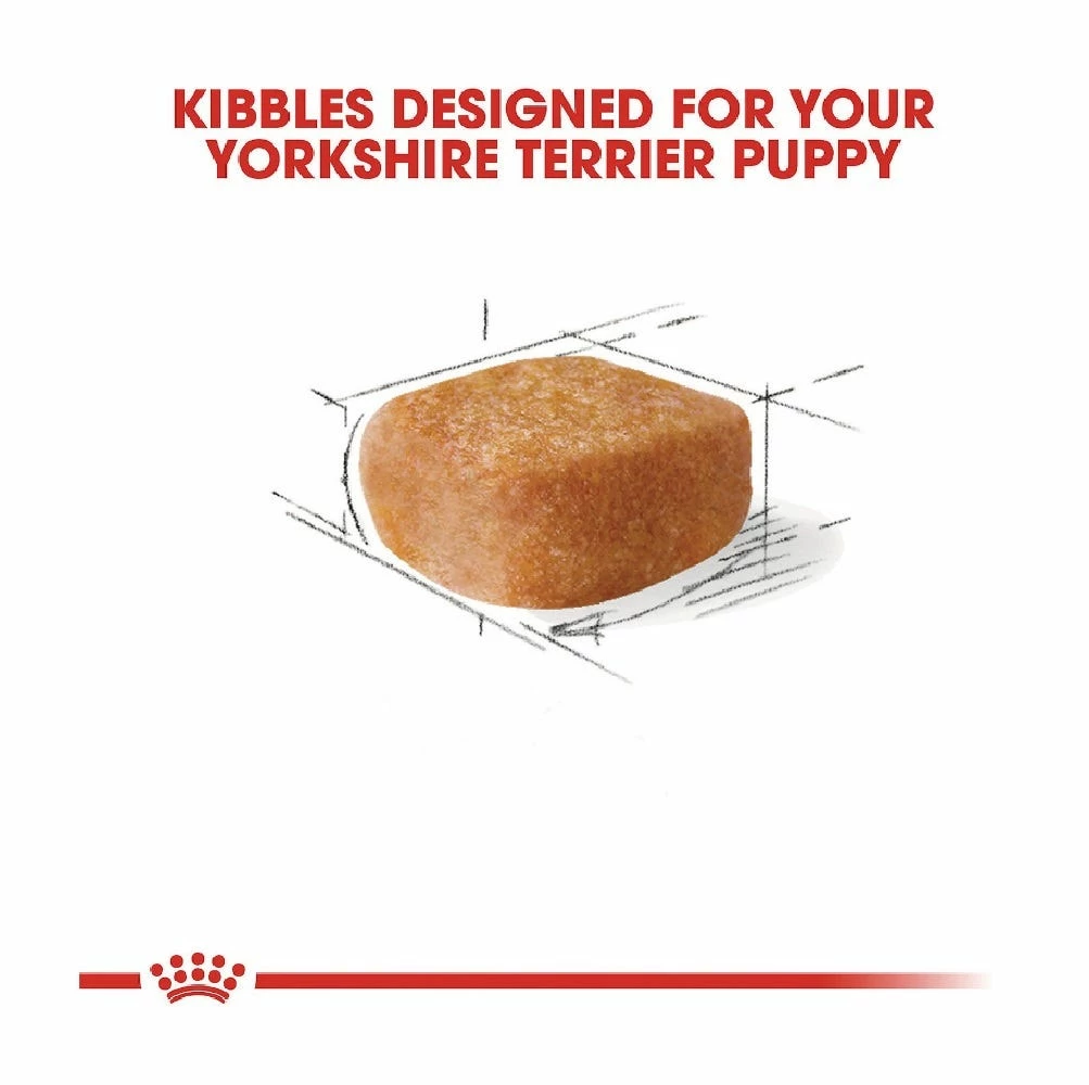 Royal Canin Breed Health Nutrition Yorkshire Terrier Puppy Dry Dog Food is tailor-made nutrition created just for your Yorkie pure breed puppy. This exclusive breed-specific diet is uniquely formulated for small breed puppies with specific nutrients to small dogs thrive. The specialized kibble shape and texture are designed for your Yorkshire Terrier’s short muzzle and level bite, making it easy for toy breeds to pick up and chew. An exclusive mix of antioxidants and vitamin E supports his developing immune system and keeps his body growing strong. Optimal levels of omega-3 and omega-6 fatty acids, plus biotin, help maintain healthy skin and coat. And high-quality proteins and prebiotics support healthy digestion to help promote optimal stool quality and reduce unpleasant stool odors. Once your Yorkshire Terrier puppy is over 10 months old, transition him from puppy dog food to Royal Canin Yorkshire Terrier Adult Dog Food for precise nutrition into their adult years.
