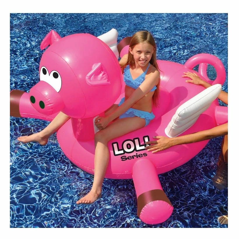 Who let the animals in the pool? Get crazy with this jumbo wacky 54″ animal inspired ride-on float. This Laugh Out Loud inflatable float will put a smile on your face. Kids will have a blast riding the waves on the back of a big colorful pink pig complete with curly tail!